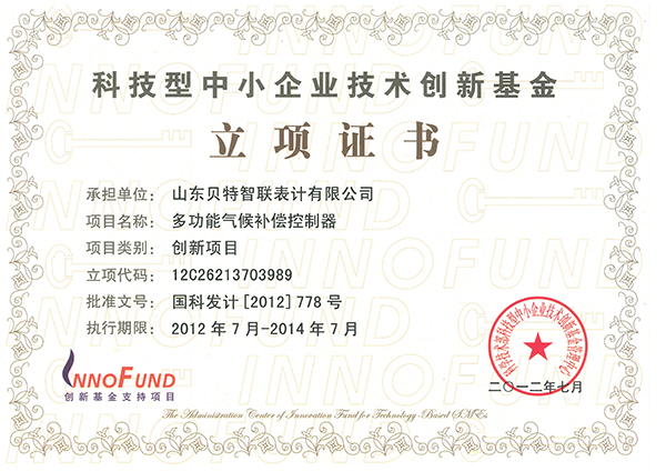 國家級科技型中小企業(yè)技術(shù)創(chuàng)新基金立項證書